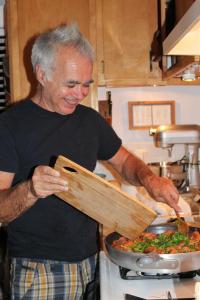 3. Slice green onions. Set aside 2 tablespoons for garnish. Dice bell pepper & chop olives.